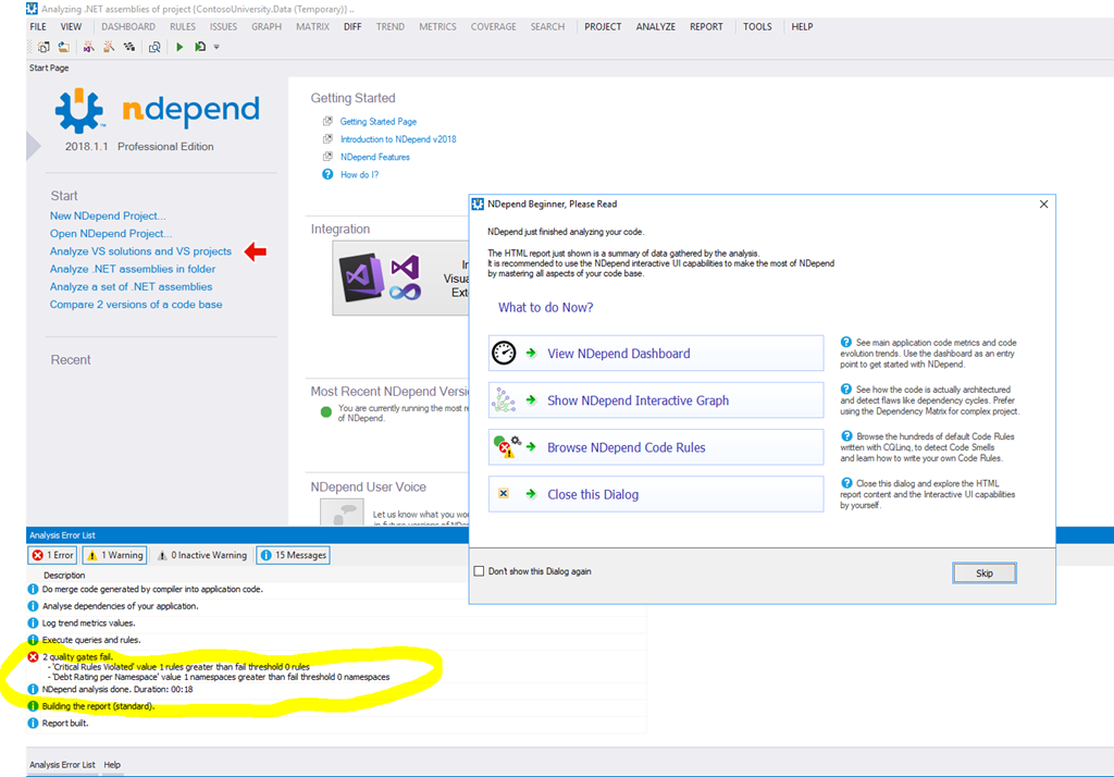 1.) NDepend.Console – Command line program to execute NDepend analysis. You would be mostly using this component on CI Build server Help