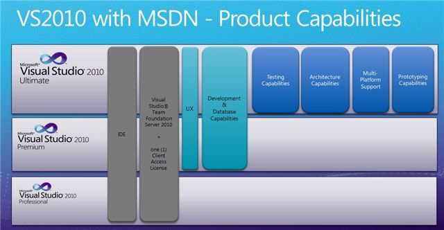 As a developer may need some testing or code visualisation capabilities, Visual Studio Ultimate is not only for the testers and the architects but the developers too. Again think about capabilities and not edition “per role”. That why We would describe Visual Studio 2010 Ultimate as the advanced edition.