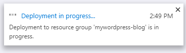 Wait until this deployment is finished to setup WordPress initial configuration for use along with your custom domain. We will continue with our setup in next part of this series.
